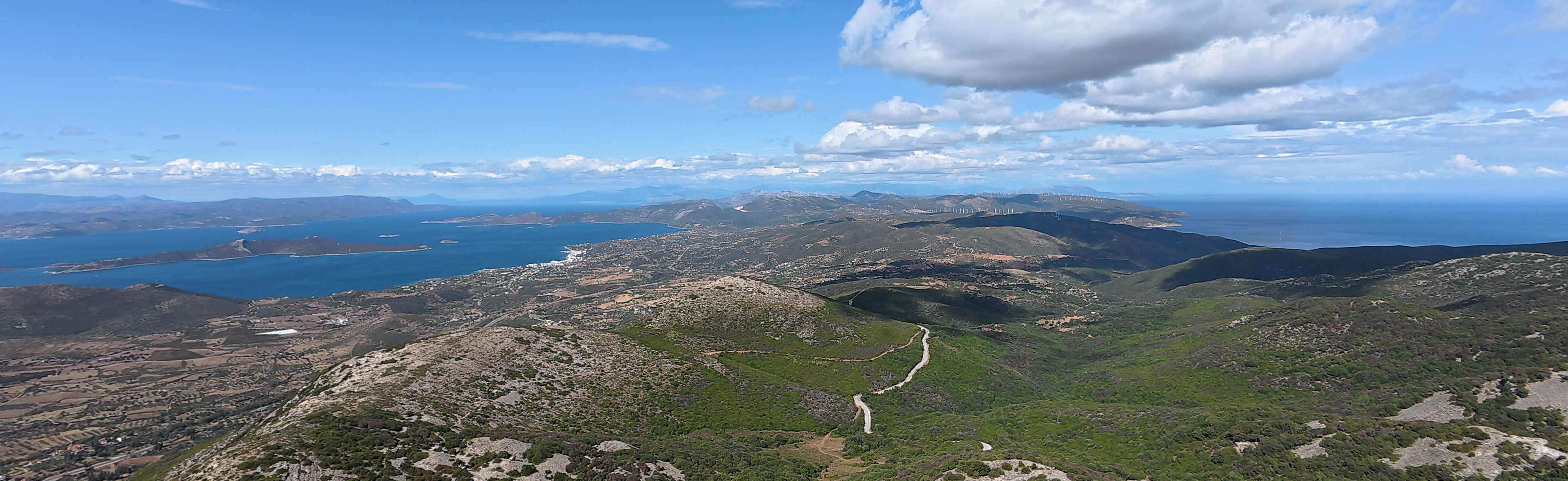 Südlich von Marmari steigen die Berge steiler an, die Formen werden massiver, und das Ochi-Gebirge setzt mit dem zweithöchsten Berg Euböas einen klaren landschaftlichen Akzent. Hier beginnt ein neuer Naturraum – rauer, großräumiger und alpiner als die sanftere Mittelgebirgslandschaft nördlich davon.
